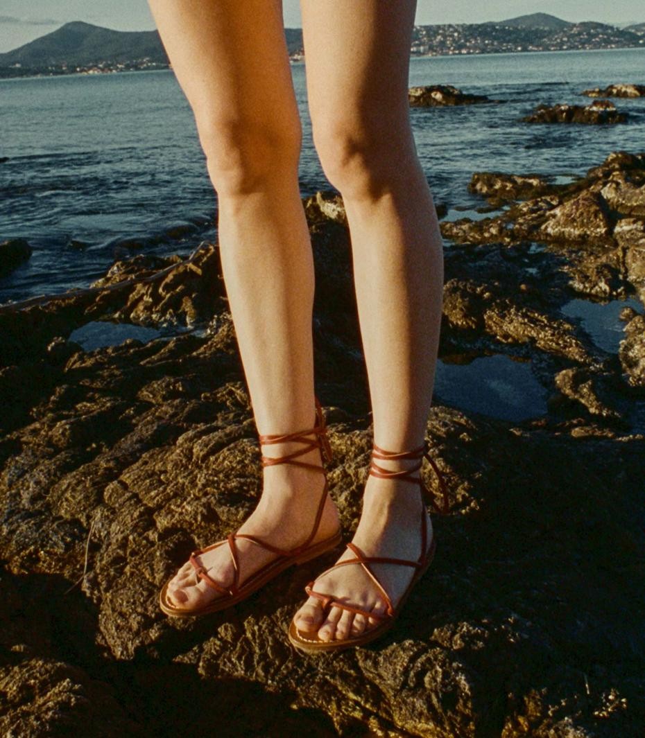 K.Jacquesin perustajan Jacques Keklikianin 1950-luvulla suunnittelemat DÔEN & K.Jacques -bikinisandaalit ovat rakastettu malli, jonka he valmistivat kahdessa värissä juuri meille. Itsekiinnittyvillä nahkaisilla nilkkaremmeillä varustettu bikini näyttää yhtä hyvältä paljaiden jalkojen kanssa kuin nilkkoja koristavien kukkakuvioisten mekkojemme kanssa.