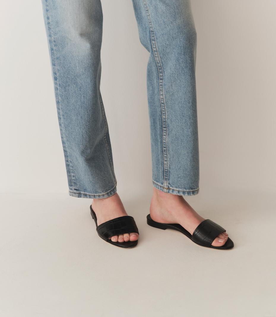 Bróga DÔEN | Sandal Angelica Dubh do Mhná i gCroc Bréige