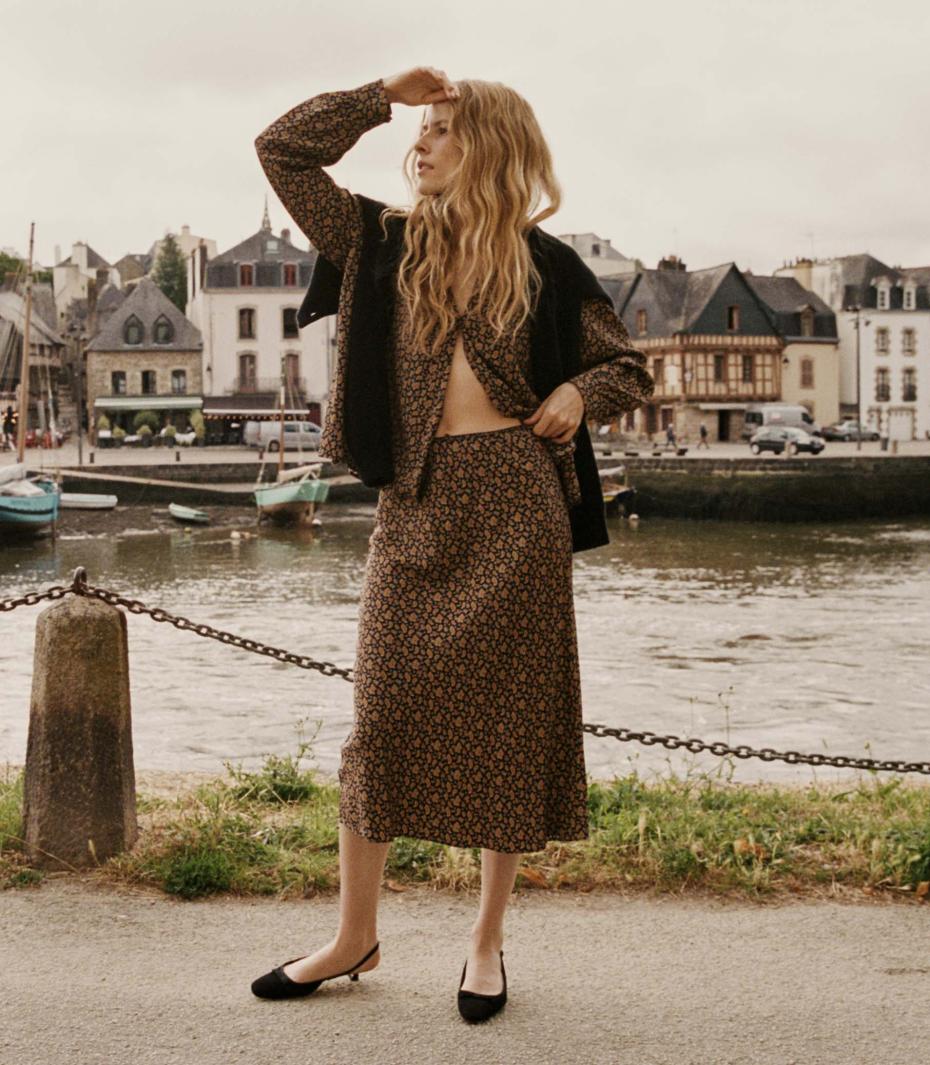Déanta as crepe de chine síoda-réón imí agus déanta inár Villette Paisley nostalgic, is leagan beagán níos giorra é an Sciorta Elowena dár Sciorta Elowen spreagtha ag na 90idí. Tá coim ard air le mionsonraí scallop leaisteacha agus sciorta gearrtha claonta sreabhach a shroicheann lár na lao.